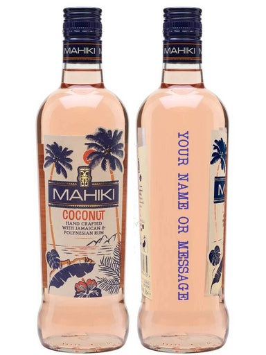 CUSTOMISED BOTTLE OF MAHIKI COCONUT RUM LIQUEUR - The Mahiki Coconut rum is refined with Jamaican and Polynesian rums added to Wester Samoan ...